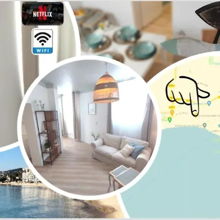 - ❓À quelle distance du centre-ville se trouve l'appartement Plage & Confort 3 Pieces Parking Clim Et Wifi ?Le centre-ville se trouve à 20 minutes de marche de l'appartement Plage & Confort 3 Pieces Parking Clim Et Wifi.